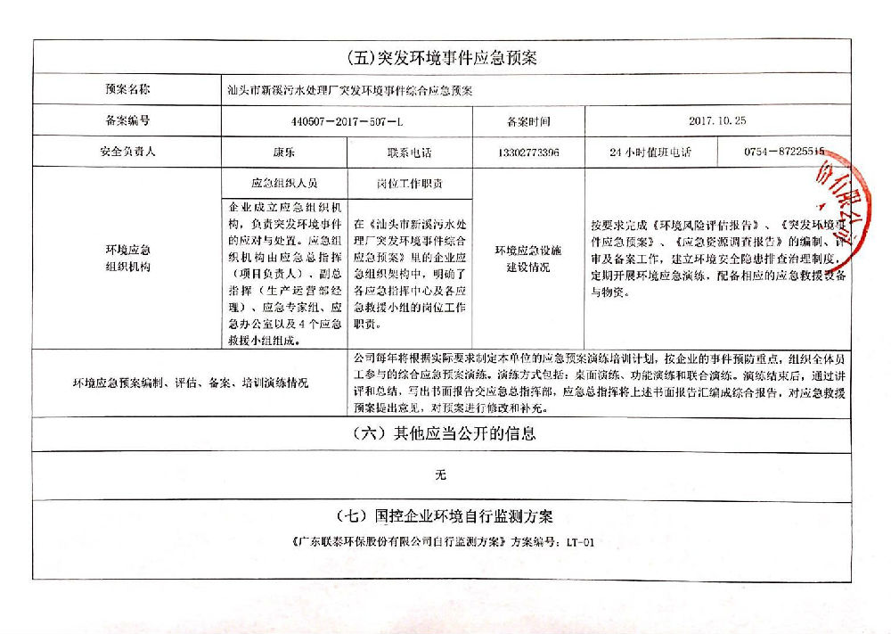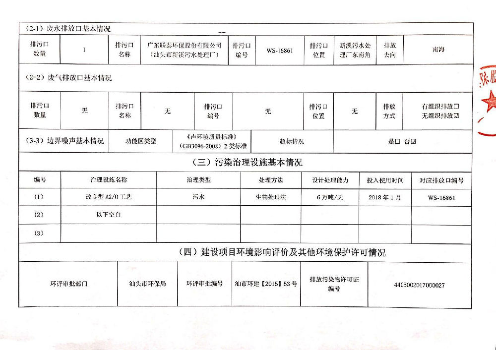 企業事業單位環境信息公開表(新溪污水處理廠)