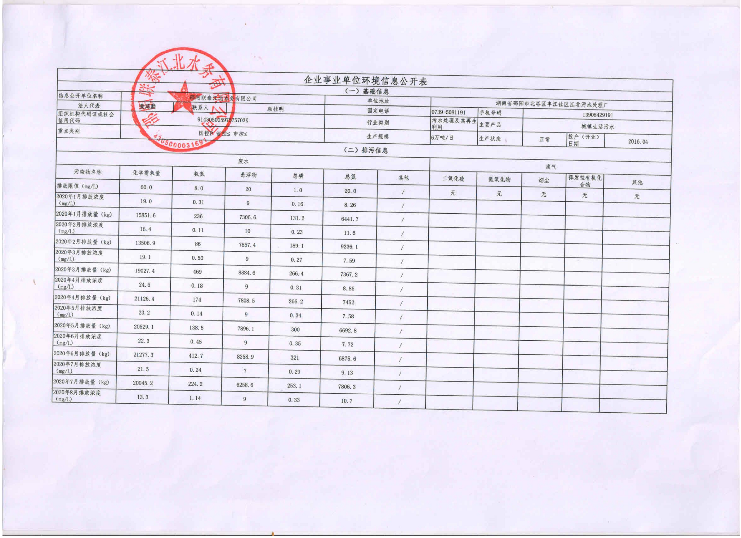 企業事業單位環境信息公開表