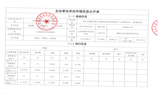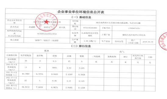 企事業單位環境信息公開表